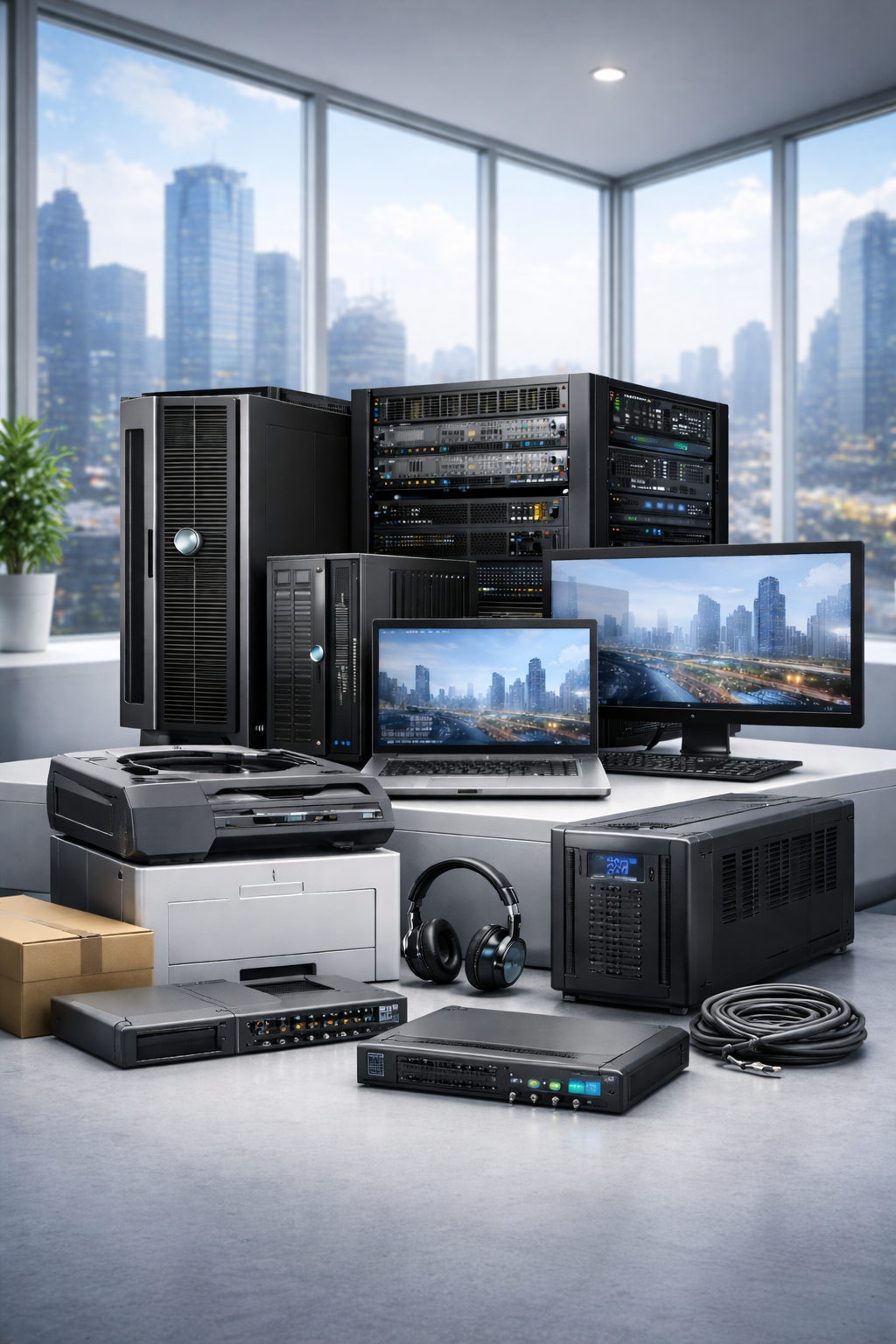 Monitor, printer, UPS, aksesoris, dan perlengkapan pendukung lainnya.